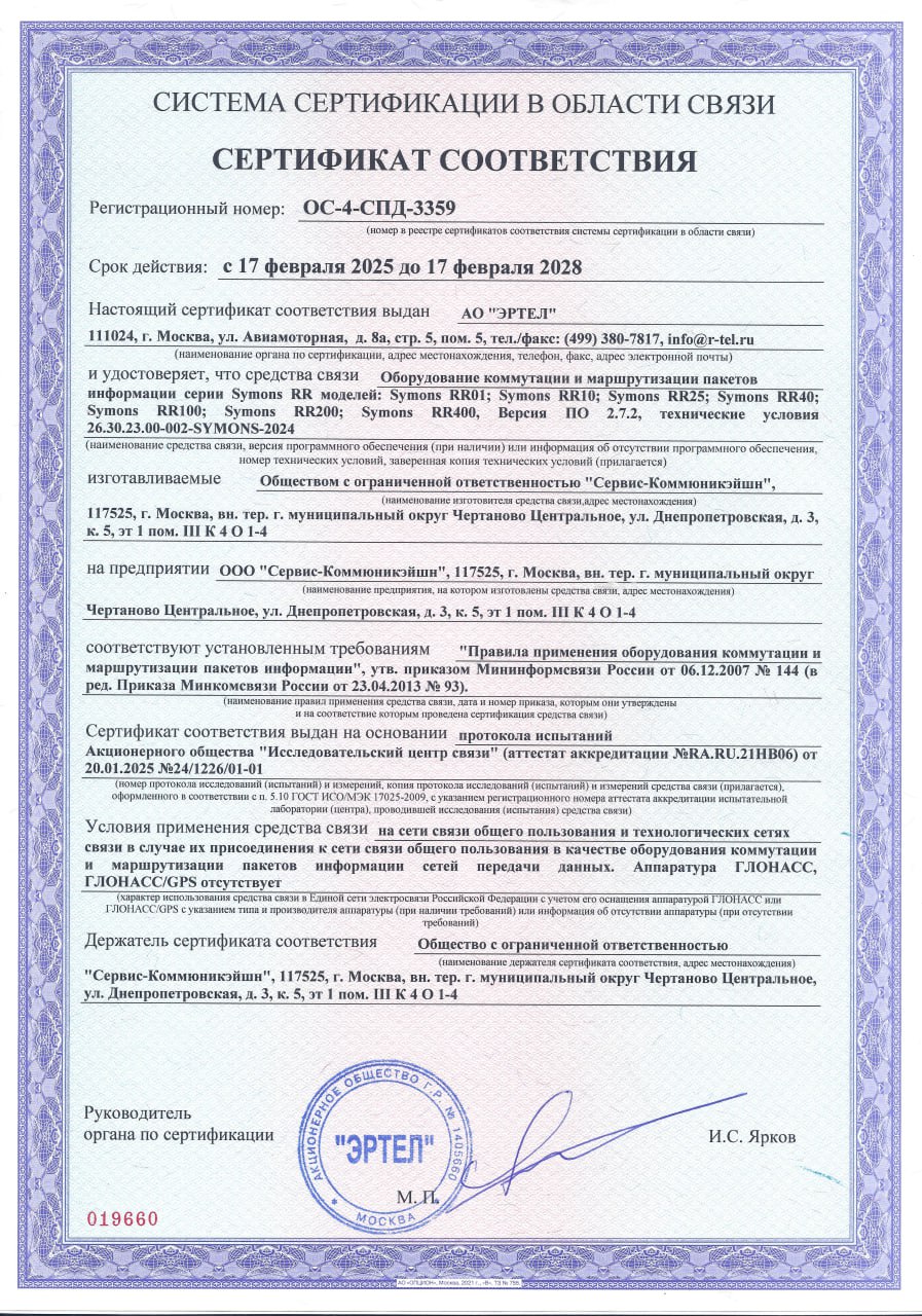 Symons RR25 — это надёжный выбор для компаний, которым важно обеспечить бесперебойную маршрутизацию в условиях высокой сетевой нагрузки и при этом сохранить контроль над инфраструктурой без лишней зависимости от внешних решений или лицензий.